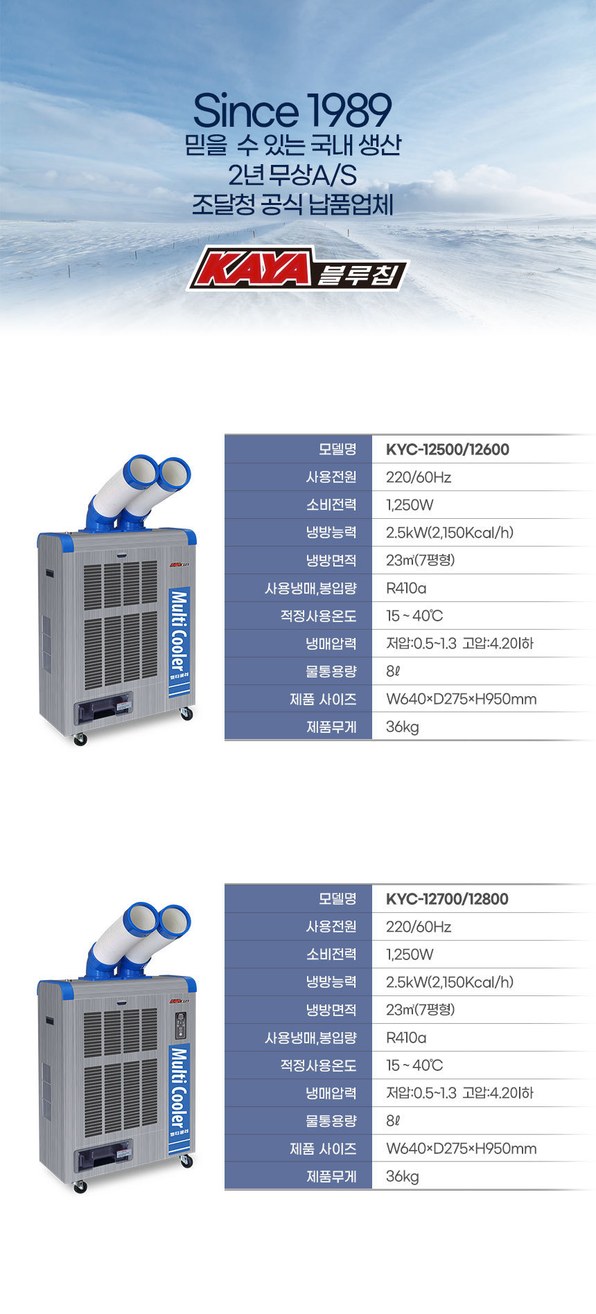 가야블루칩 이동식 멀티쿨러 7평 / 1,250W 기계식