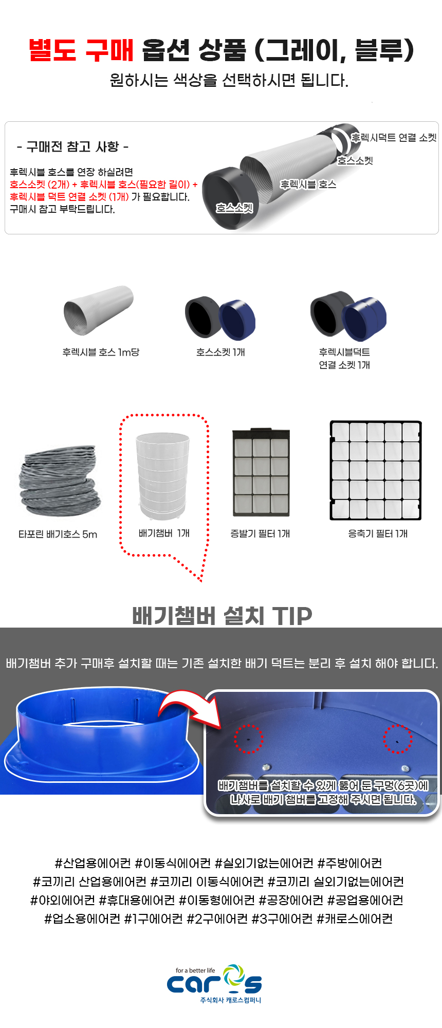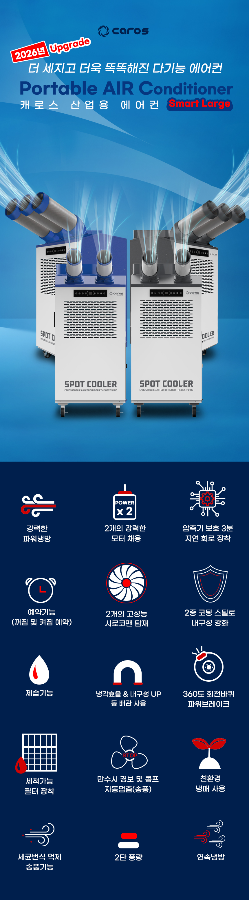 캐로스 2구이동식에어컨6,000W 물통/자연배수그레이