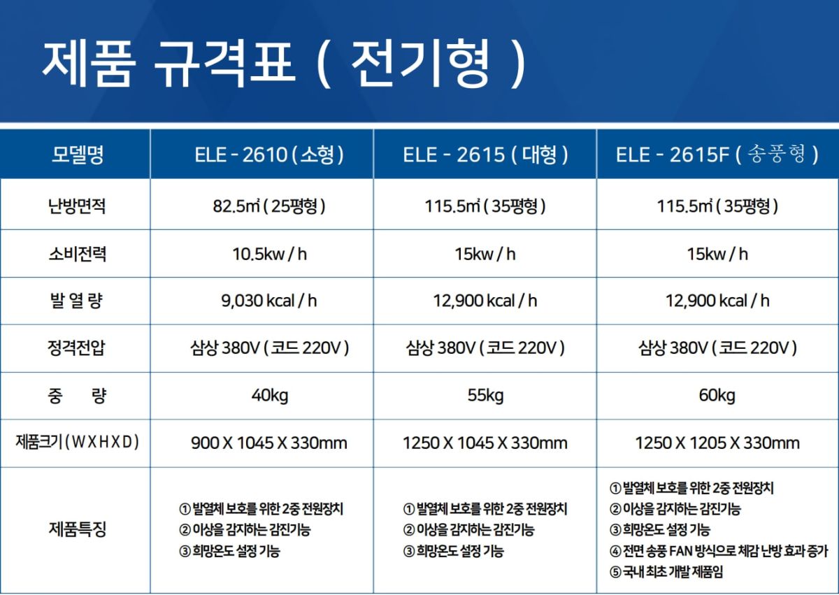 히트코원적외선전기히터 25평형/9,030kcal 10.5kw/380V3상